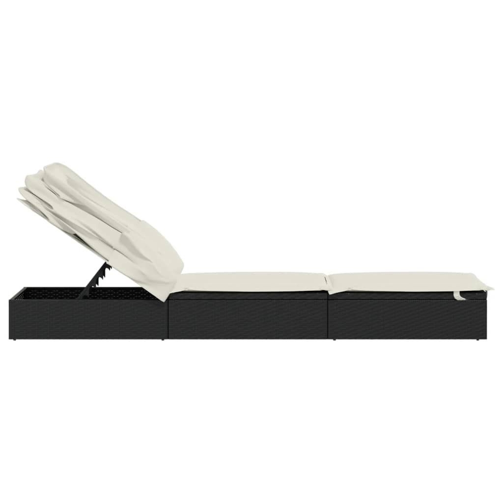 vidaXL Sunbed with Foldable Roof Black 213x63x97 cm Poly Rattan