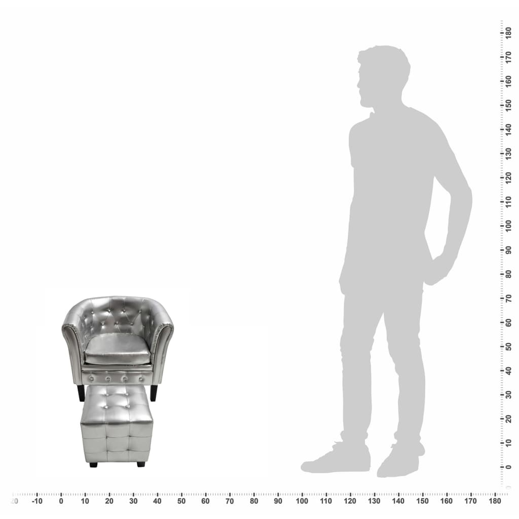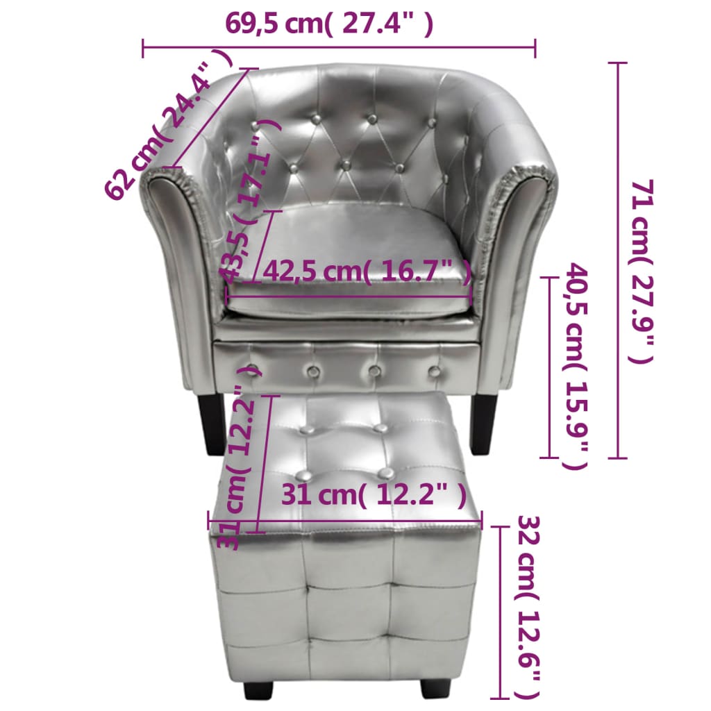 vidaXL Tub Chair with Footstool Silver Faux Leather