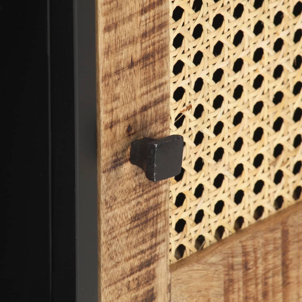 - Material: Solid rough mango wood with a natural finish, natural cane, iron with black powder coating finish