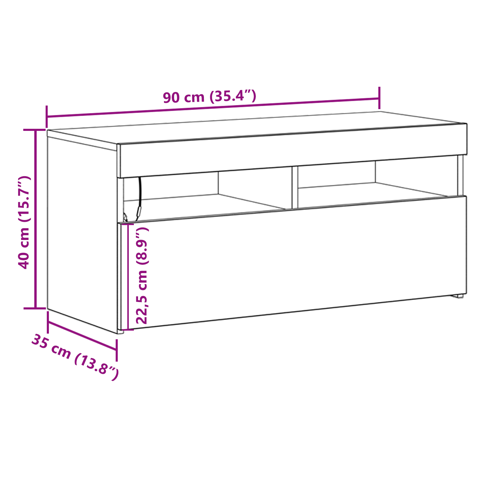 - Overall dimensions: 90 x 35 x 40 cm (L x W x H)