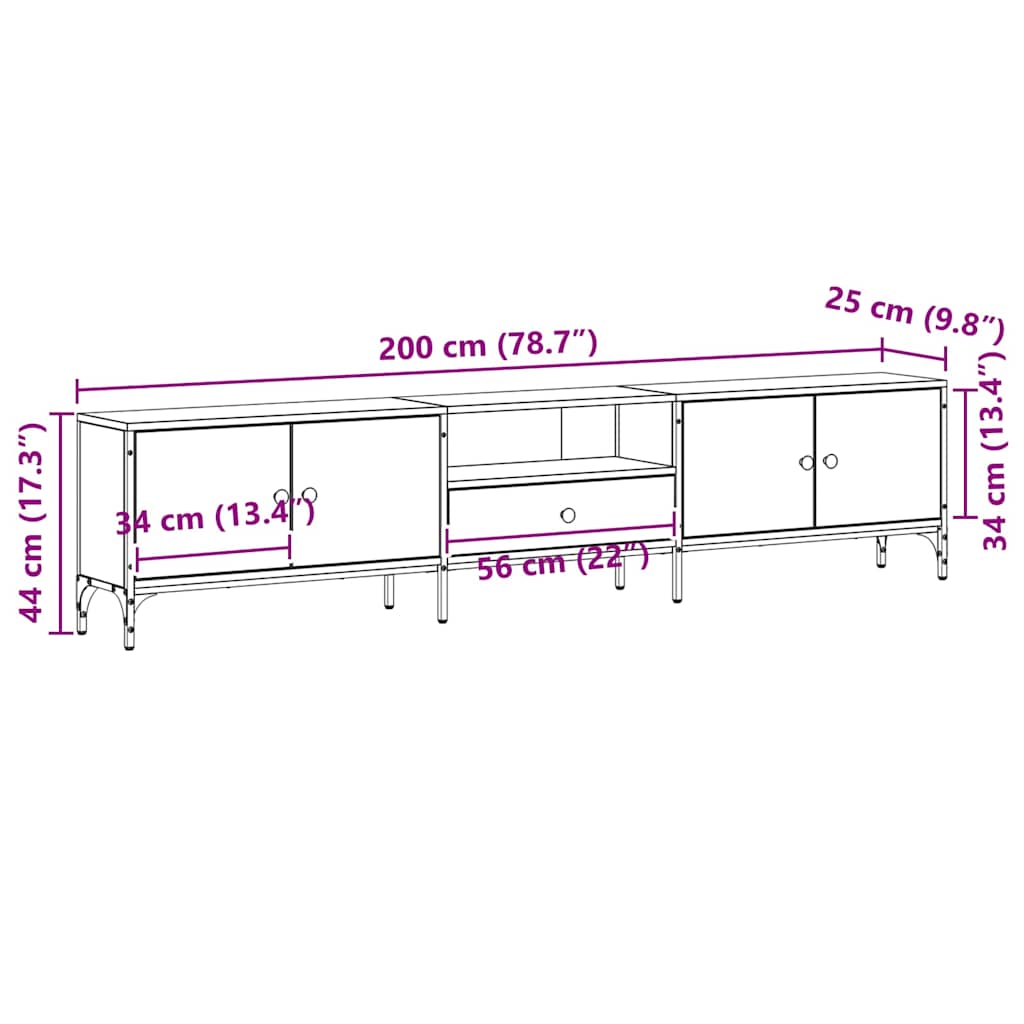 vidaXL TV Cabinet Black oak 200 x 25 x 44 cm Engineered wood