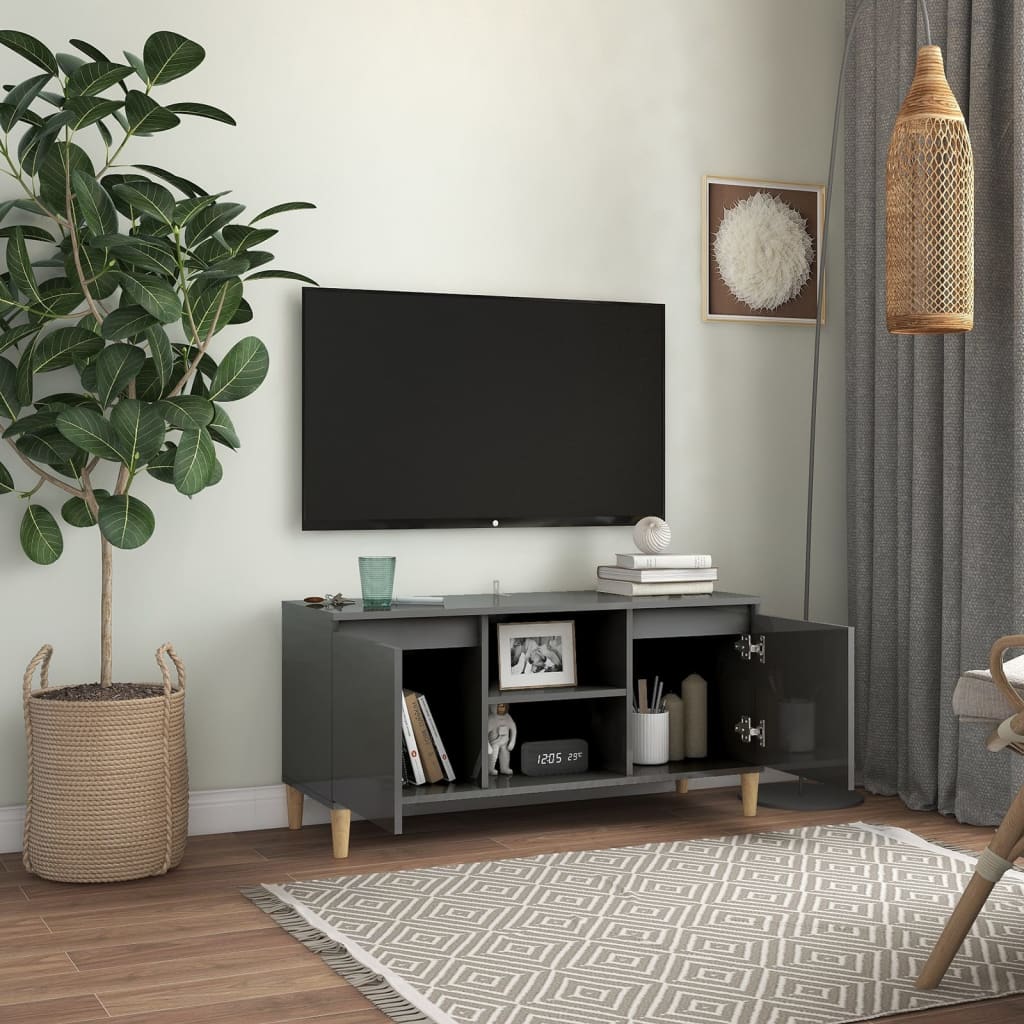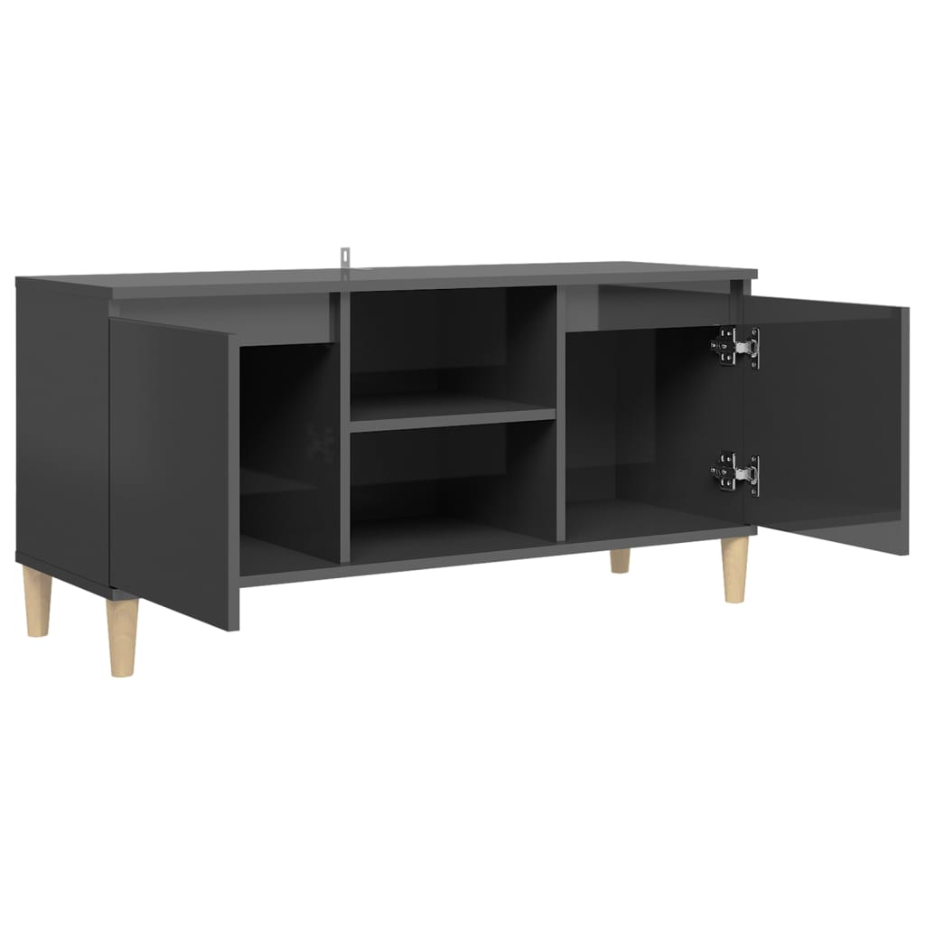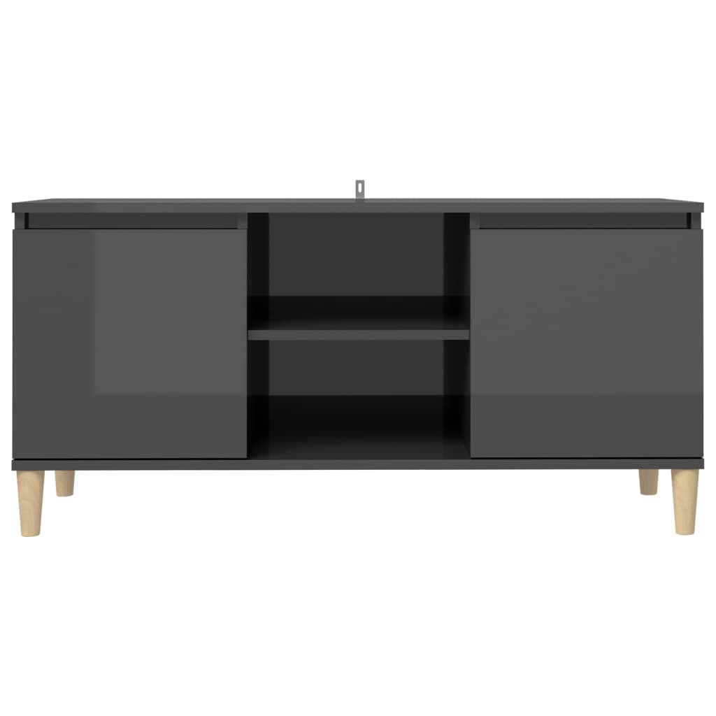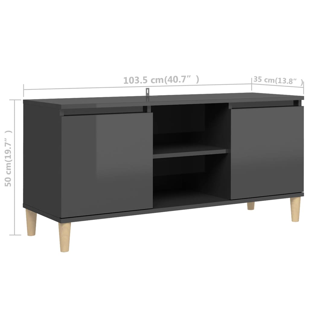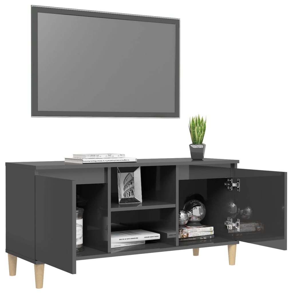 vidaXL TV Cabinet & Solid Wood Legs High Gloss Grey 103.5x35x50 cm