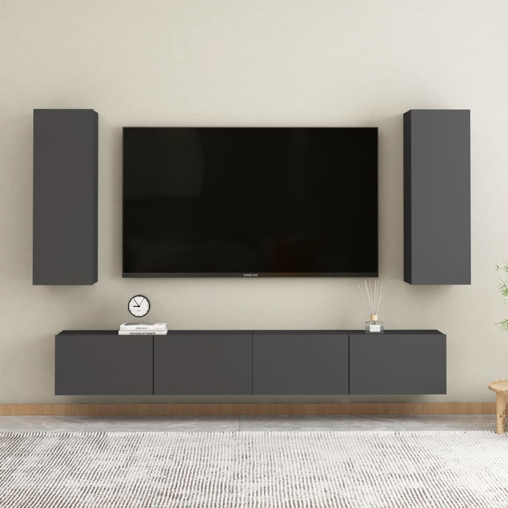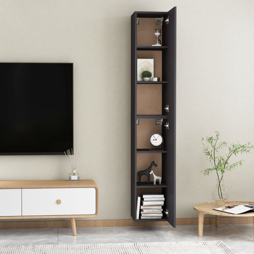 vidaXL TV Cabinets 2 pcs Grey 30.5x30x90 cm Engineered Wood