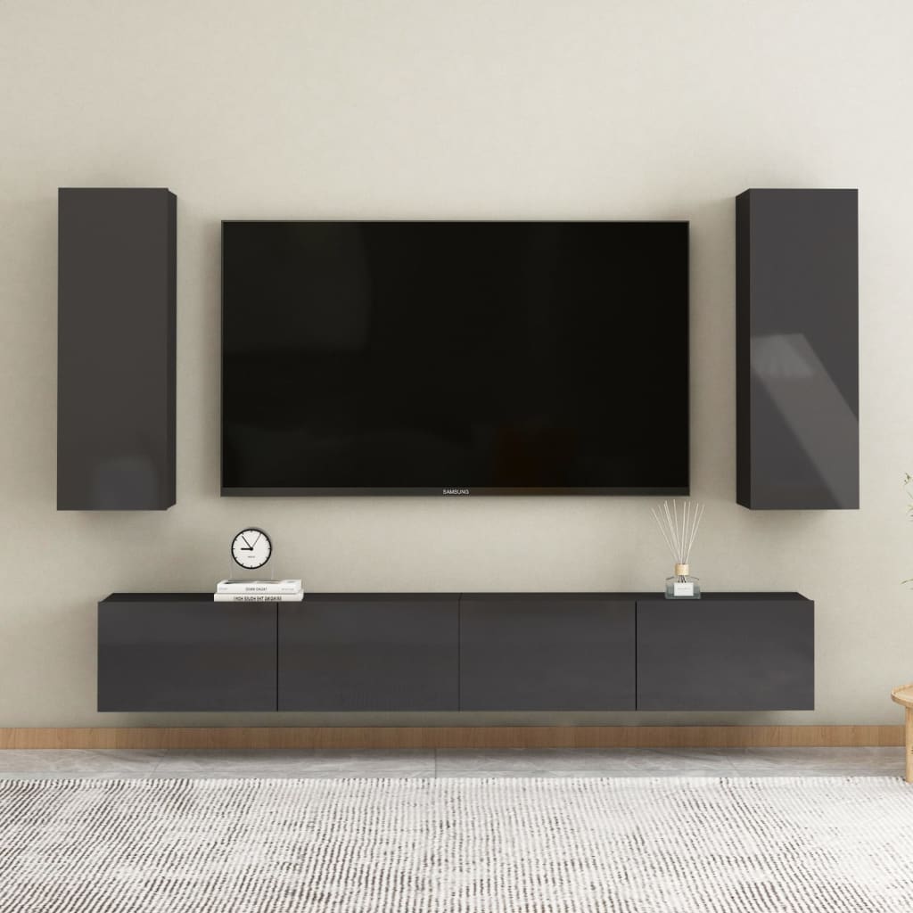 vidaXL TV Cabinets 2 pcs High Gloss Grey 30.5x30x90 cm Engineered Wood