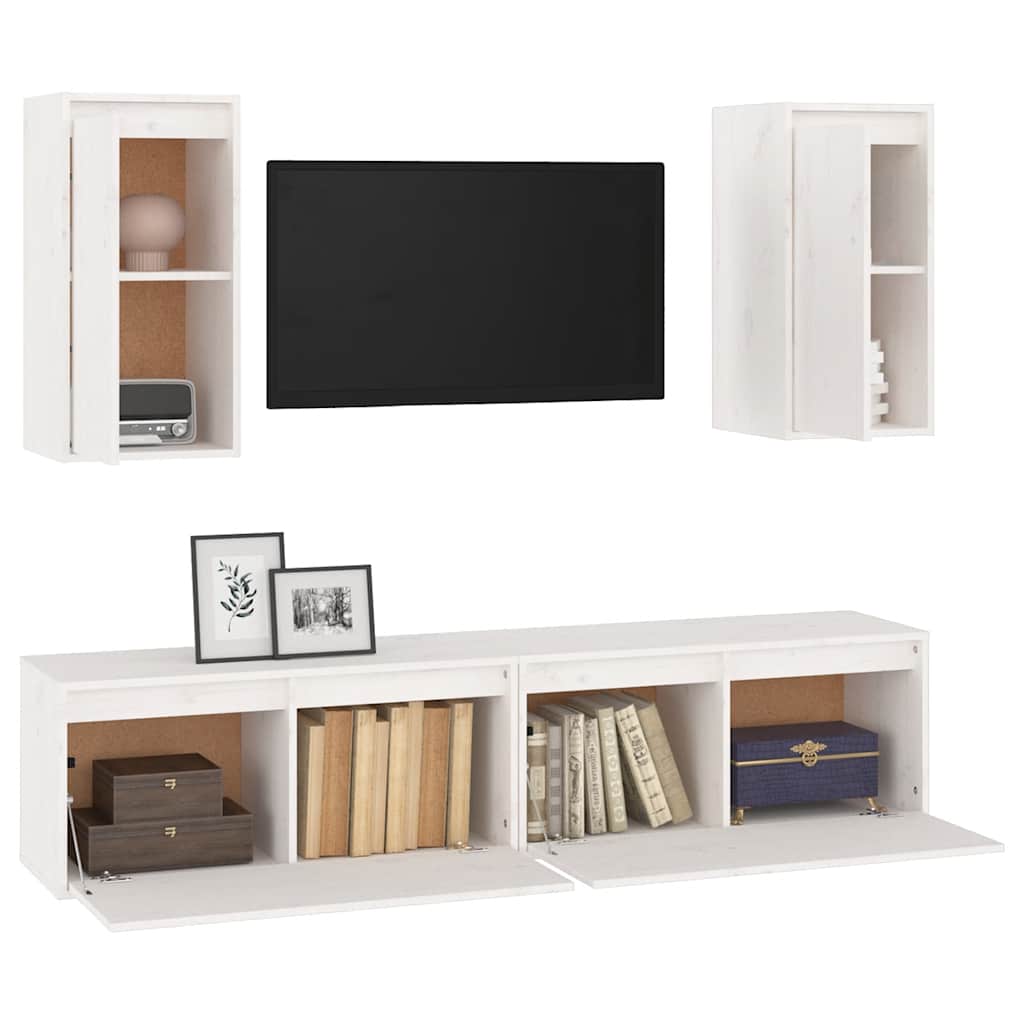vidaXL TV Cabinets 4 pcs White Solid Wood Pine