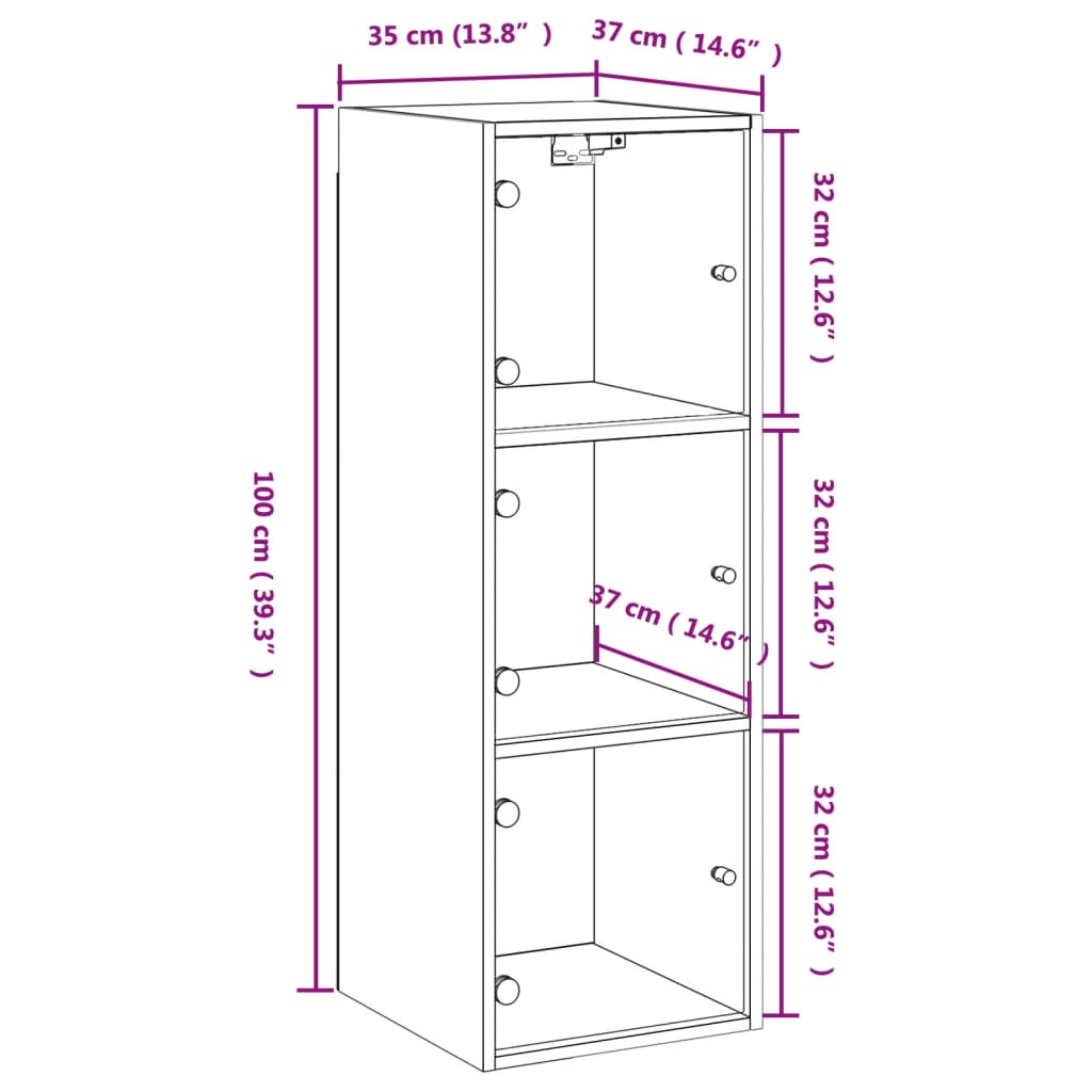 This wall cabinet is stunning and elegant. Not only is it an excellent solution for your chores and decorations, but it is also the perfect decoration for your empty walls and turns them into designer walls. Durable material: The engineered wood is of exceptional quality with smooth surface and also features strength, stability and resistance to moisture.Ample storage space: The hanging cabinet boasts compartments, enabling you to place items such as books, and keep them neatly organised and within reach.Versatile design: You can mount the storage cabinet on the workplace wall for convenient storage of tools or other miscellaneous items. Also, it transforms an empty wall into a design feature.Wall-mounted function: The storage cabinet can be wall-mounted to add extra storage space. That way, you can maximise your floor space and keep the area clean.Practical glass doors: Keep your space clutter-free by hiding small essentials behind the doors of the wall unit. In addition, the glass doors allow you to see inside the floating cabinet to display items beautifully. Good to know:Screws and plugs for inside the wall are not included. We advise to find and use screws and plugs suitable specifically for your walls. If you’re not sure, you can consult with a professional. Please read and follow each step of the instructions.