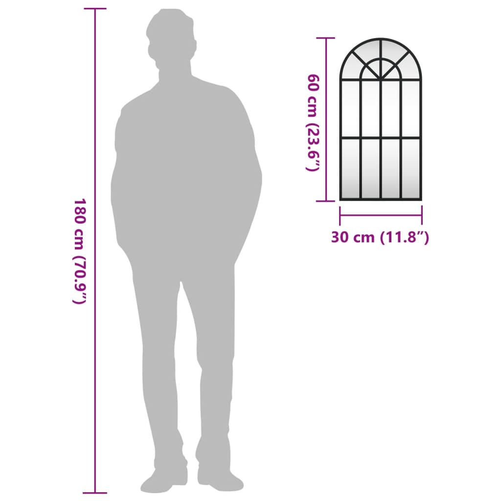 vidaXL Wall Mirror Black 30×60 cm Arch Iron