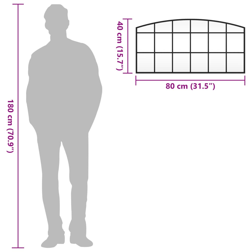 vidaXL Wall Mirror Black 80×40 cm Arch Iron