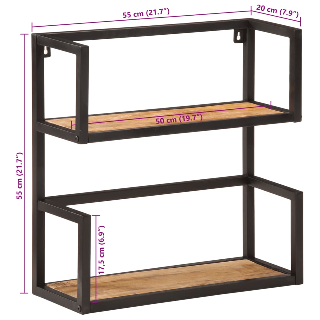 vidaXL Wall Shelf 55x20x55 cm Solid Wood Mango and Iron