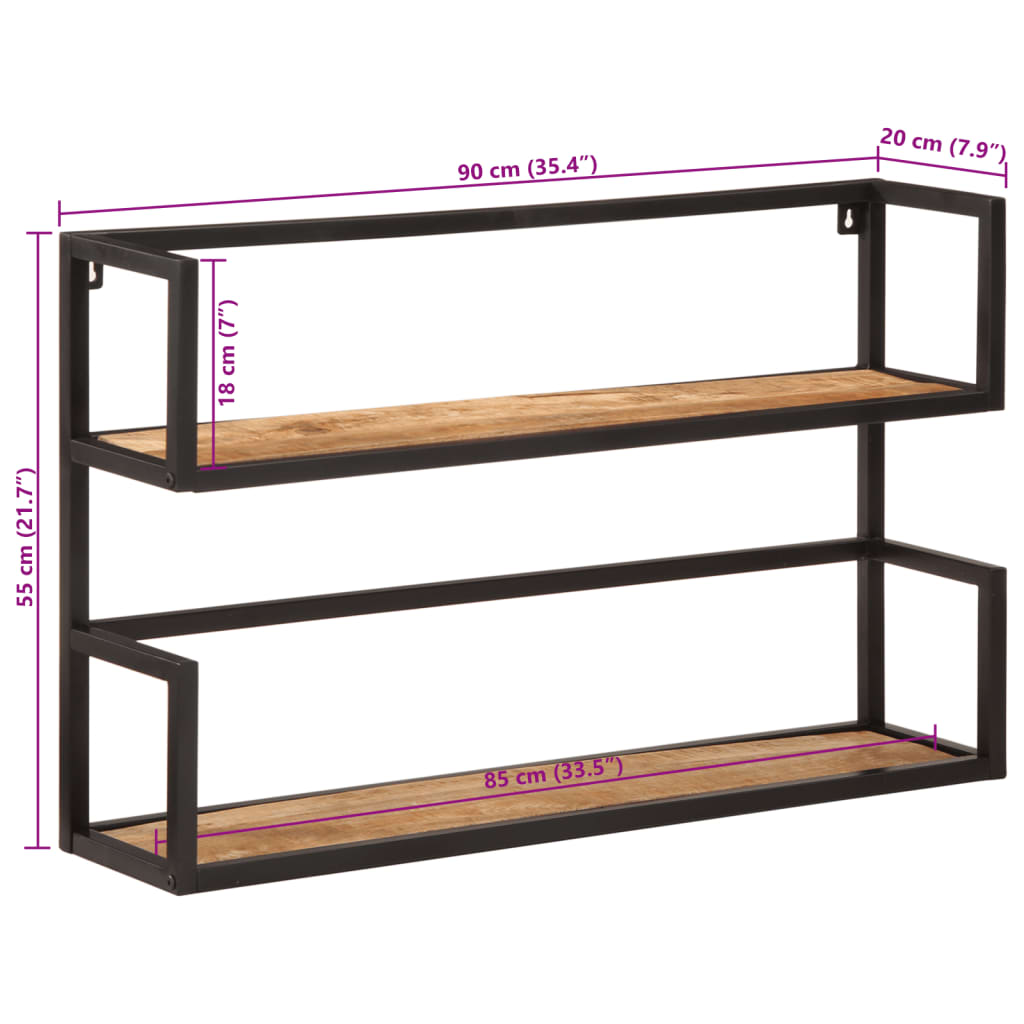 vidaXL Wall Shelf 90x20x55 cm Solid Wood Mango and Iron