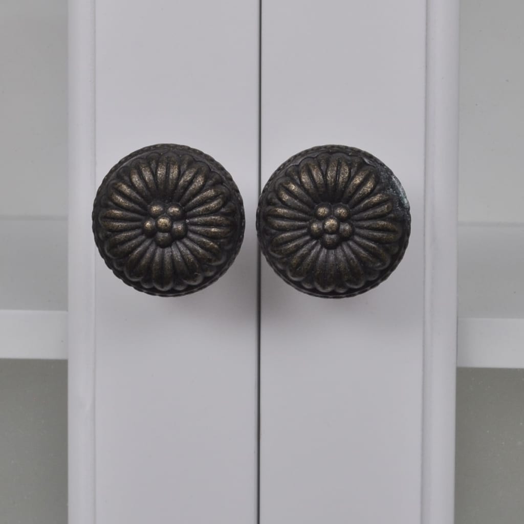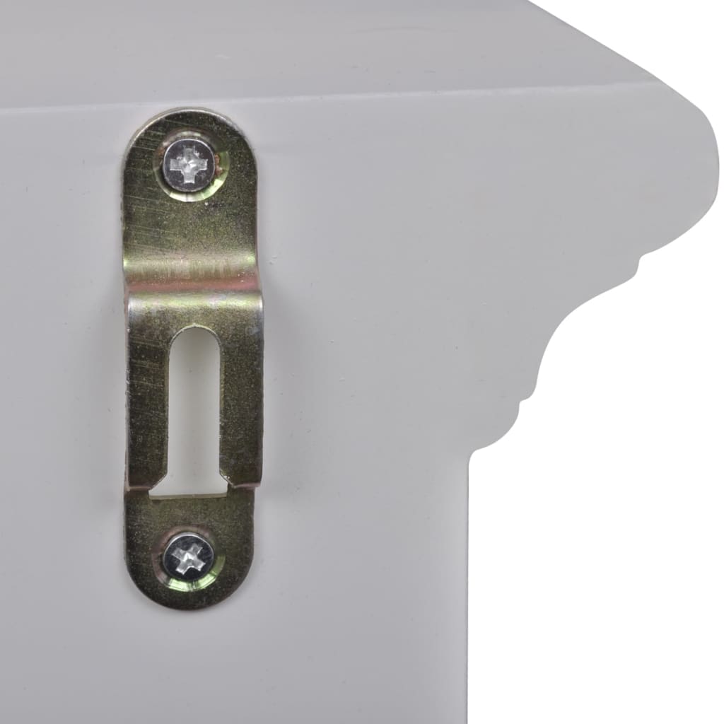 This elegant wooden wall cabinet in antique look will give you ample added storage space in the kitchen and will help to keep things organised. The cabinet has two drawers and two shelves, allowing you to easily store cereal, spices, snack foods, canned goods and more. It is equipped with 2 glass doors and 2 drawers that open easily, so you can quickly get the things you need. The hooks and pegs can be used for mugs or towels. Made of high quality wood, this cabinet is built to withstand a humid environment. The white paint finish makes it easy to clean with a damp cloth.