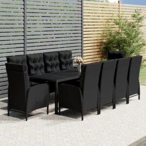 vidaXL 9 Piece Garden Dining Set with Cushions Black Poly Rattan