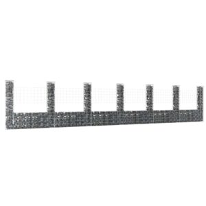 vidaXL U-shape Gabion Basket with 7 Posts Iron 740x20x150 cm