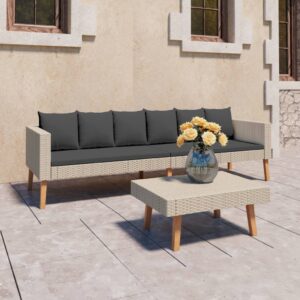 vidaXL 2 Piece Garden Lounge Set with Cushions Poly Rattan Beige